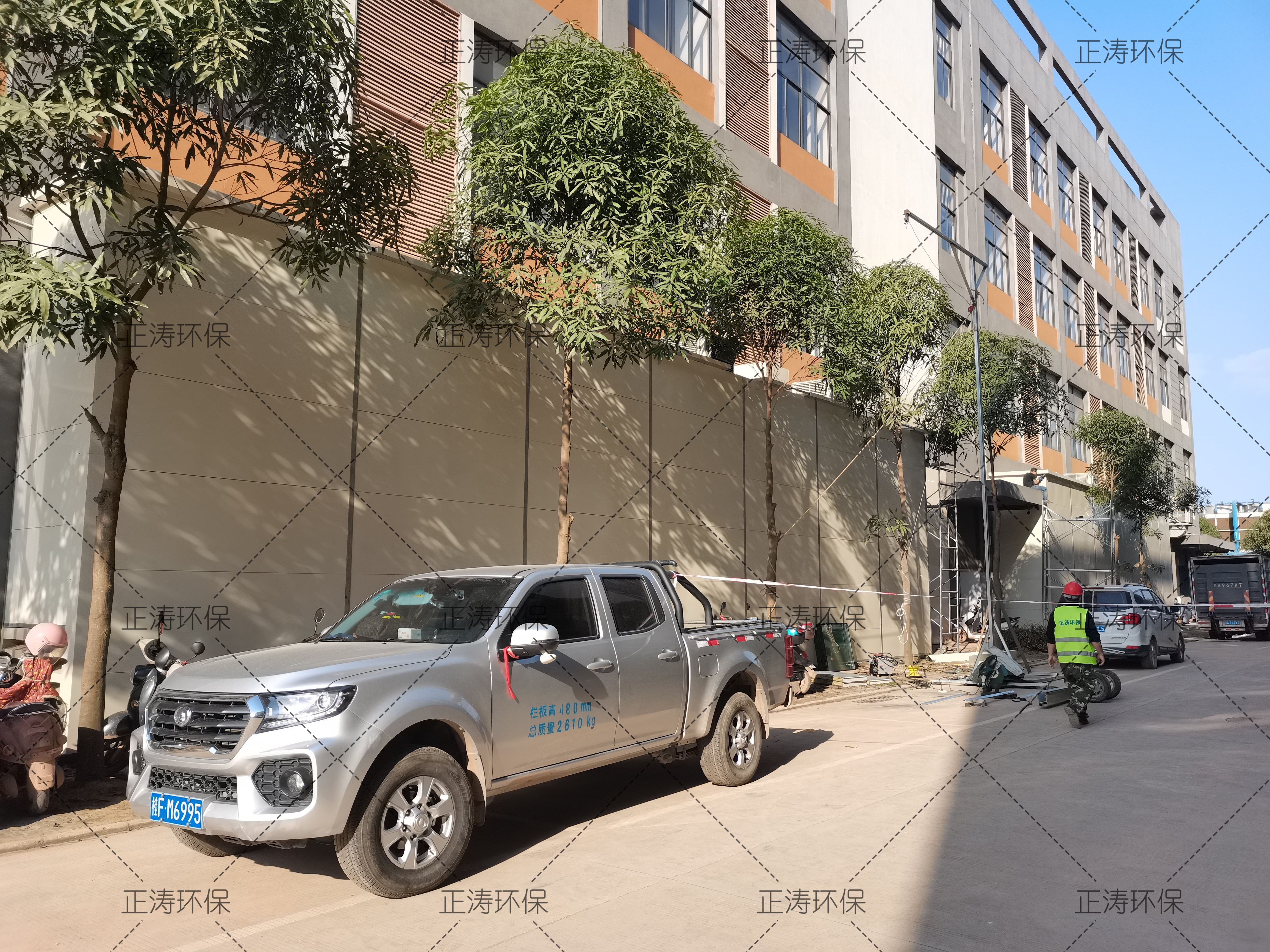 鑒于節(jié)約資金,應(yīng)甲方要求分批治理;此次治理范圍僅限于1號(hào)樓南側(cè)1樓廠界噪聲,不包含廠房進(jìn)出大門區(qū)域。其他樓棟噪聲源均不在此次治理范圍。