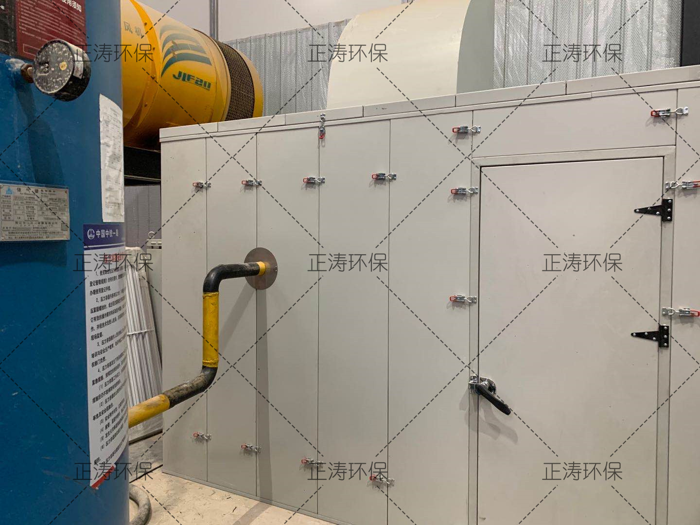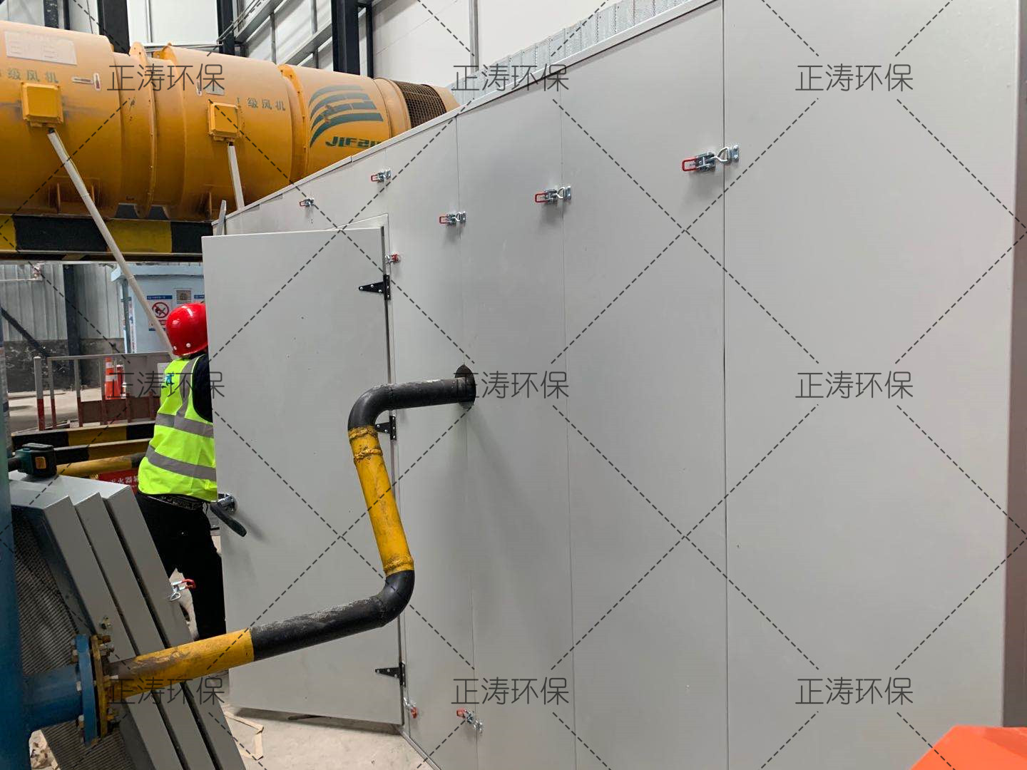 空壓機(jī)已經(jīng)安裝完畢并且投入使用,對(duì)設(shè)備本身進(jìn)行改造不符合生產(chǎn)的需要,我們需從切斷噪聲傳播途徑方面入手進(jìn)行治理,即對(duì)油煙風(fēng)機(jī)構(gòu)建隔聲罩。隔聲罩采用優(yōu)質(zhì)鋼板、高性能阻尼隔音材Tecsound50/70、高性能吸音材料及一些輔材加工制作而成,可以有效的阻止噪聲向外傳播。