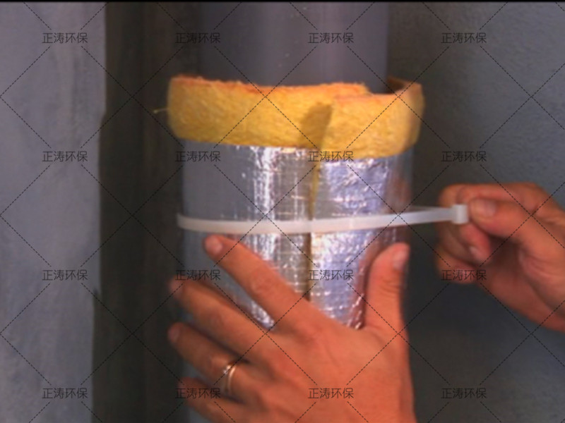 4. 每隔20cm系一道塑料束帶將FT55AL固定在管壁外。用密封膠帶封住搭接口。注意要將接縫也密封,否則會降低隔音效果。